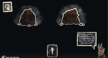 Love the art style! Also love the cards as navigation. While I can only go forward now, I was imagining having cards that are fear based (like the thoughts in your head) or hope based (maybe false confidence / greed?).
